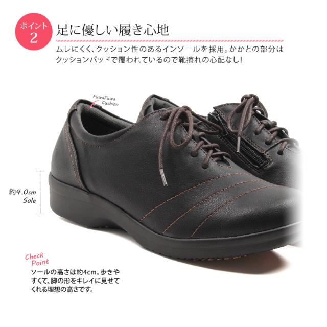 コンフォートシューズ レディース おしゃれ 黒 幅広 4e レースアップ 軽量 カジュアル スリッポン 厚底 歩きやすい ウォーキングシューズ スニーカー ローヒール 外反母趾 幅広 ゆったり やわらかい フラット 556-52 送料無料 R-PREMIUM