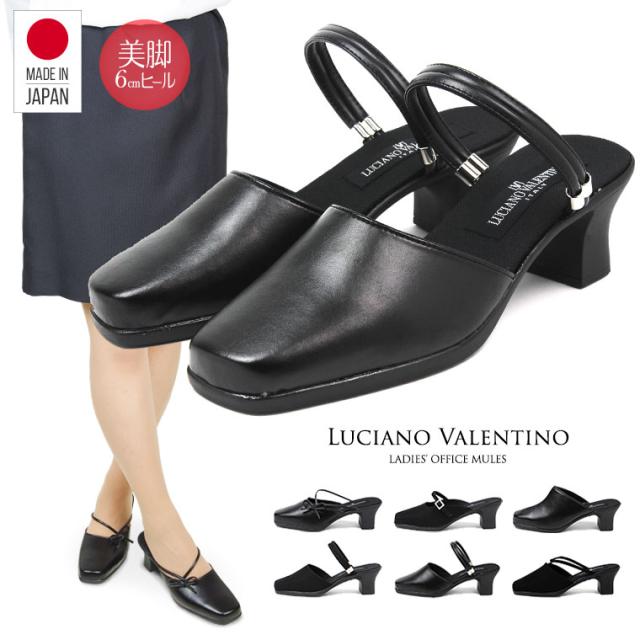 ミュール サンダル レディース 歩きやすい 黒 前ふさがり 吸湿 発熱 サンダル レディース ヒール 5cm 痛くない 疲れない 日本製 オフィスサンダル 美脚 ミュールサンダル ミュールパンプス サンダル おしゃれ LUCIANO VALENTINO 送料無料