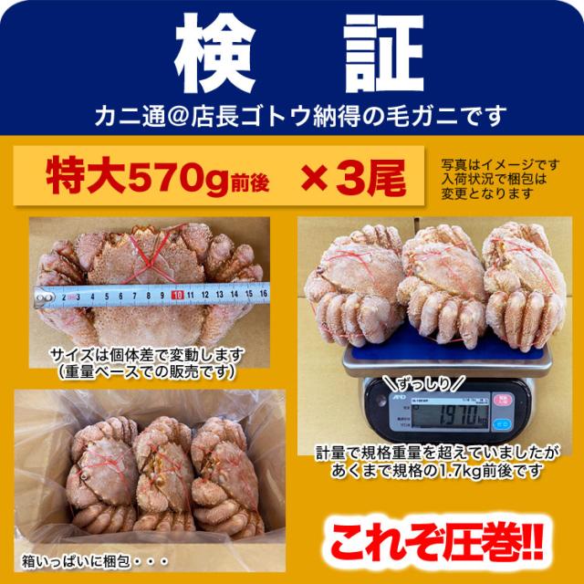 【特大】毛ガニ 570g 前後×3尾セット 北海道産 姿 味噌 けがに 毛がに カニ 蟹 かに 脚 折脚たし脚入る場合があります