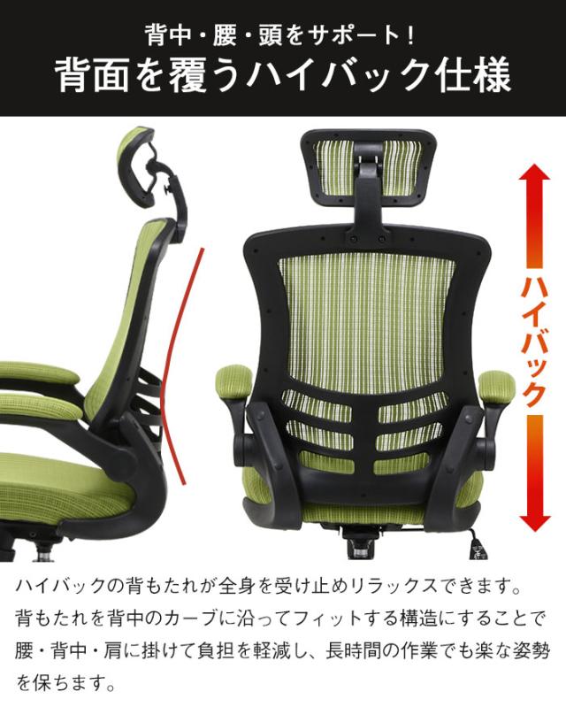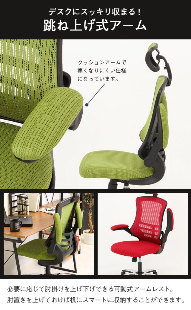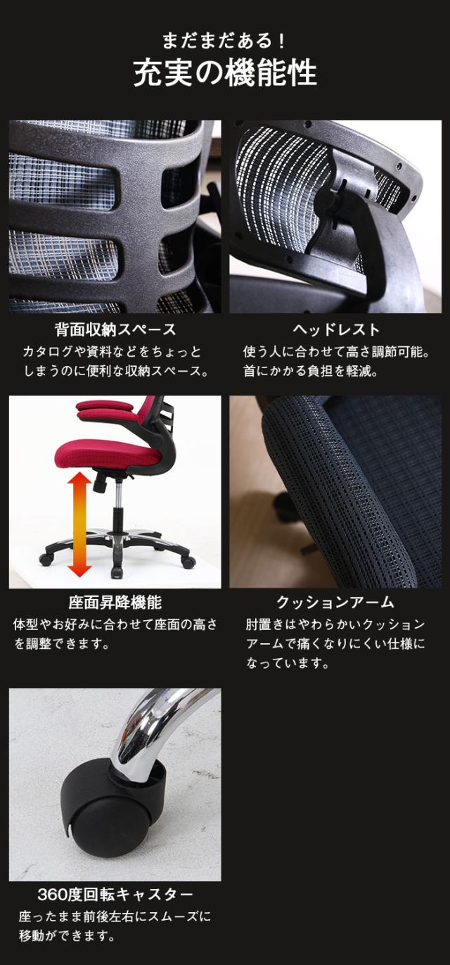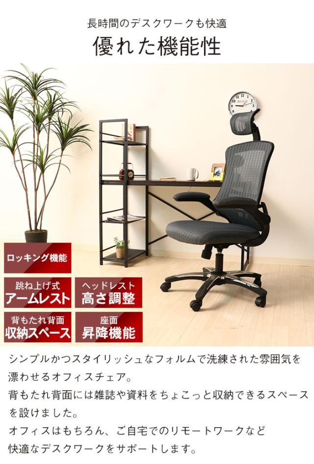 【値下げ】デスクチェア 肘付き ハイバック ヘッド付 オフィスチェア メッシュ アームアップ 昇降 ロッキング 回転 キャスター付き