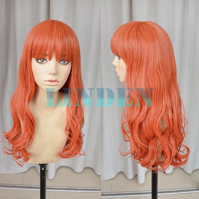 炎の紋章 ファイアーエムブレム セリカ ウィッグ かつら ロングパーマ 赤 オレンジ 原宿系 コスプレ アニメ コスチューム ネット付き