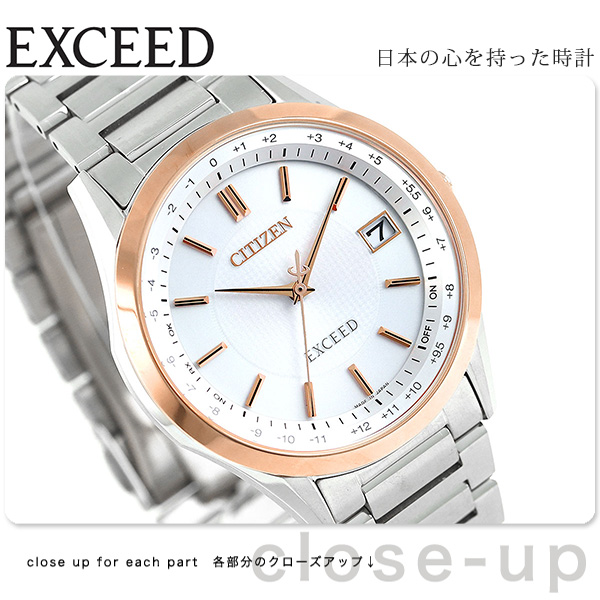 正規品 7年保証キャンペーン 送料無料 シチズン エクシード エコ・ドライブ電波時計 ダイレクトフライト ペア ワールドタイム 電波ソーラー メンズ 腕時計 CB1114-52A CITIZEN EXCEED アナログ シルバー ◆確かな品質と洗練されたデザインによって唯一の価値を生み出す。シチズン エクシードは、まさに「本物」を求める大人にふさわしい時計です。ペアウオッチにも対応するメンズモデルが登場。薄型のスタイリッシュなデザインやどの角度からも明るく見える文字盤、見やすいインデックスと針色調にこだわり、エレガントに仕上げています。世界4エリア日本・中国・ヨーロッパ・北米で電波を受信し、正確な時刻を表示するワールドタイムやりゅうずを一段引いて、秒針を都市名に合わせると、選択した都市の時刻とカレンダーを瞬時に表示するダイレクトフライト機能を搭載しています。軽くキズがつきにくいスーパーチタニウムを採用。冠婚葬祭、スーツスタイル、ビジネスなど様々なシーンで活躍します。 発売日:17年10月発売
