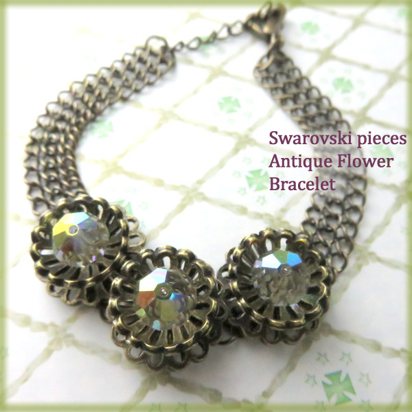 スワロフスキー 大粒 アンティーク フラワー チェーン メッシュ ブレスレット バングル 大人 高級 華やか、アクセサリー レディースアクセサリー パーティー 結婚式 プレゼント ギフト おしゃれ 流行 メール便 送料無料