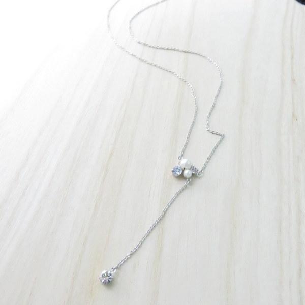 Y字 ロング ミディアム ネックレス 華奢 ビジュー パール
