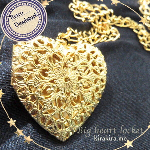 日本製・デッドストック ハート 70年代数量完全限定 BIG ロケット ペンダント ゴールド レトロ 古着 アクセサリー サイケデリック メール便送料無料