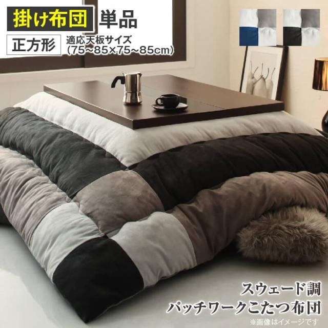 スウェード調パッチワーク こたつ布団 〔tsudoi〕ツドイ こたつ用掛け布団単品 正方形(75×75cm)天板対応 サイレントブラック 【北海道・沖縄・離島配送不可】