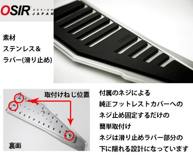 | OSIR DESIGNによるVW Golf7およびAudi A3/S3(8V)用のフットレストカバーです。Golf7 GTIやS3(8V)等に標準装備されたステンレスペダルと調和したデザインが魅力です。付属のネジ3本による既設フットレストへのネジ止め固定です。ネジは滑り止め部分の下に隠れる設計になっています |