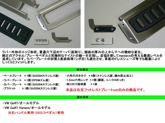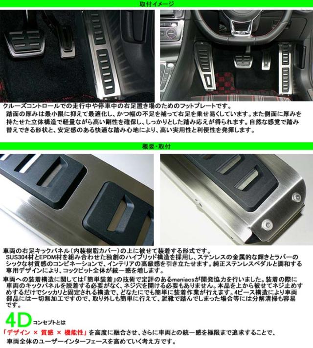 4D 右側フットプレート VWフォルクスワーゲン GOLF7用フットプレート ゴルフ7の足元を引き締める Volkswagen maniacs Right Side Foot Plate フットレストプレート CTC