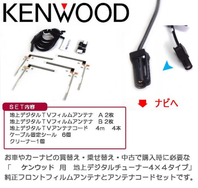 ケンウッド用地デジテレビアンテナ4×4チューナー用フィルムアンテナ・コードセット T90-1518-08 ナビの乗せ換え、お車の買い替え時にナビの乗せ換え