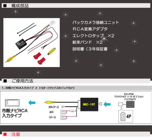 NRC-10T トヨタ純正バックカメラが、そのまま使える 社外ナビに接続できる RCA端子に変換 (JP-CA14BS/RCA-003T/AV-C01同等)NAVCナビック