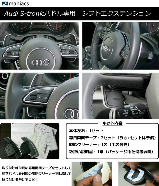 DSGパドルシフト装着車用 Audi A1/A3/A4/A5/A6/A7/A8/Q3/Q5 パドルシフトエクステンション maniacs S-tronic Paddle Progress マニアックス アウディ CTC