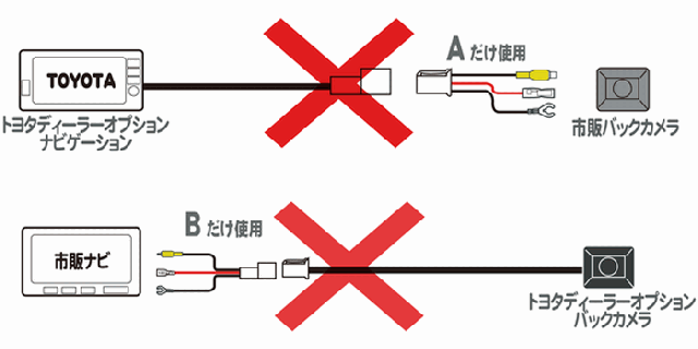 当商品は、カメラ側ハーネス(A)と、ナビ側ハーネス(B)を、