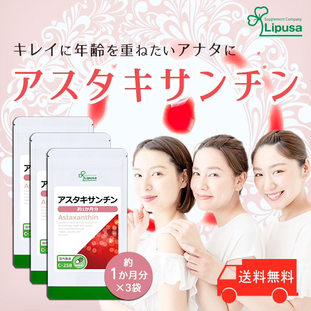 アスタキサンチン 約1か月分×3袋 C-258-3 (30カプセル×3袋) 送料無料 美容 エイジングケア サプリ リプサ Lipusa 公式 agesugi_sbe