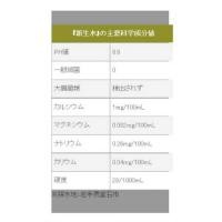 ●採水地:岩手県釜石市 ●PH値:8.8 ●1Lあたりの成分:カルシウム10mg,マグネシウム0.82mg,ナトリウム2.6mg,カリウム0.4mg,硬度28 |