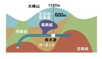 その層の中で約二億年前に磁鉄鉱と石灰岩とザクロ石でできた厚さ600メートルの自然の大ろ過器を通って地底に湧出したお水が「新生水」です。