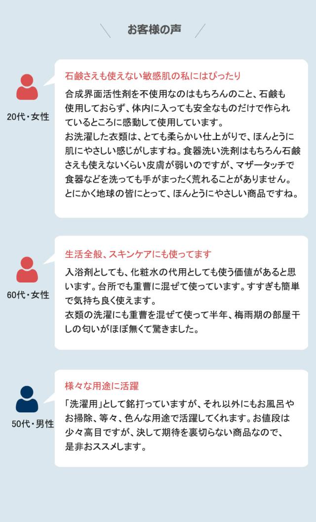 商品説明 超敏感肌におすすめ!飲めるほど安全、人にも地球にもやさしい洗剤です。詰替用のノズルがついております。