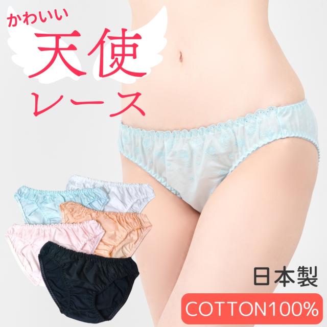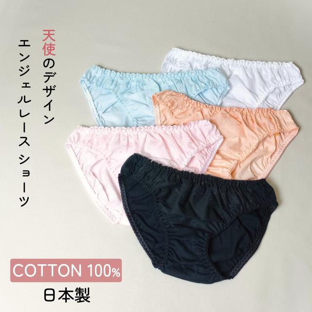 ショーツ 綿100% ショーツ 綿100 ショーツ 綿 日本製 レディース フルバック 単品 M L 可愛い エンジェル レース 天使 かわいい 下着 インナー パンティ 綿100%