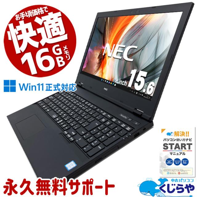 快適16GBメモリ 中古パソコン 中古 ノートパソコン Office付き おすすめ バッテリー良好 快適メモリ DVD再生 テンキー type-c Windows11 Pro NEC VersaPro VKM16X-5 Corei5 16GBメモリ 15.6型 中古 パソコン ノートパソコン