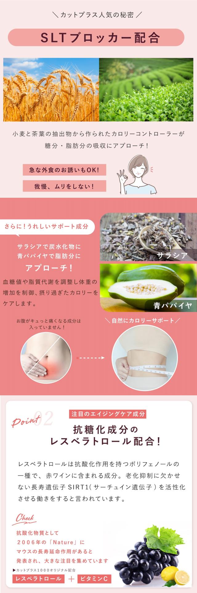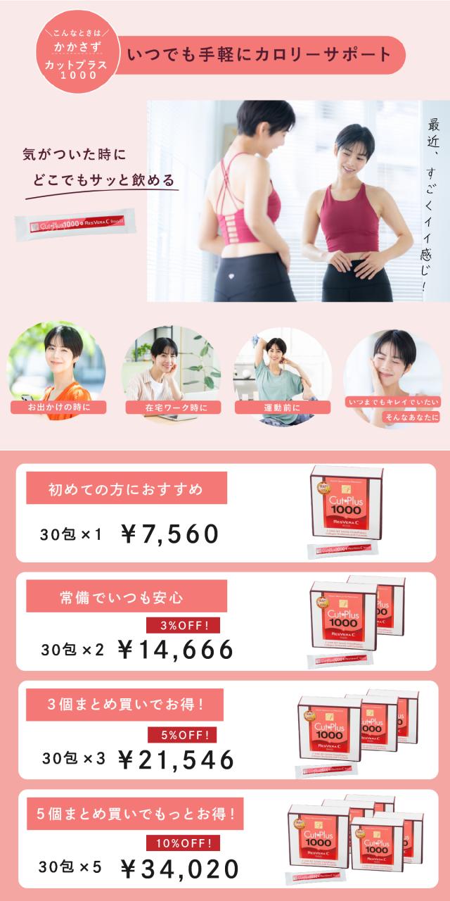 カットプラス 1000 レスベラC 2.2g×30包 お得な3個セット ダイエット サプリメント C-5100株 乳酸菌 レベストラトール ビタミンC 腸内環境 腸内フローラ 腸活 サプリ 楽天ロジ 送料無料