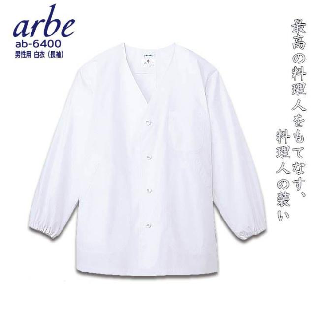 白衣 アルべ arbe AB-6400 長袖 抗菌 防臭 襟なしコックシャツ メンズ カフェ 飲食店 サービス業 制服 レストラン 厨房 ユニフォーム チトセ