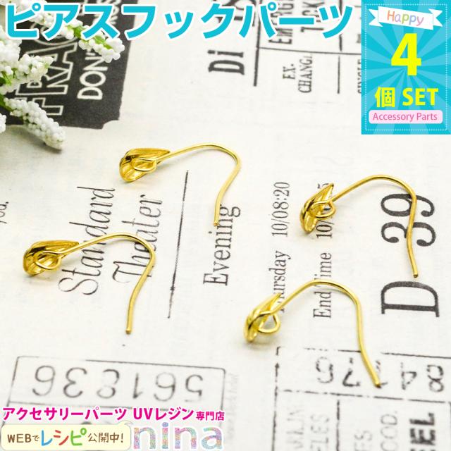 ピアスフック リーフ柄 ゴールド 4個セット ピアス ゴールド アクセサリー ピアス アレンジ フック 金 リーフ柄 レジン液 パーツ レジン液 メタルパーツ 可愛い おしゃれ