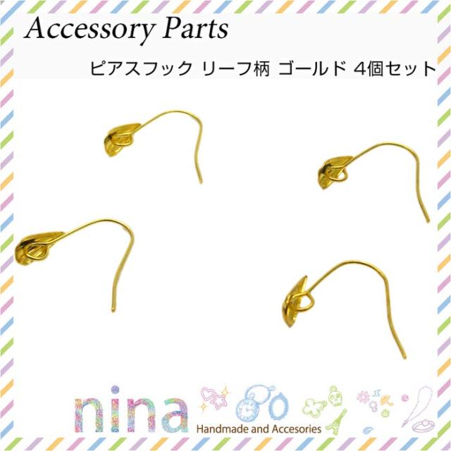 ■商品名:ピアスフック リーフ柄 ゴールド 4個セット