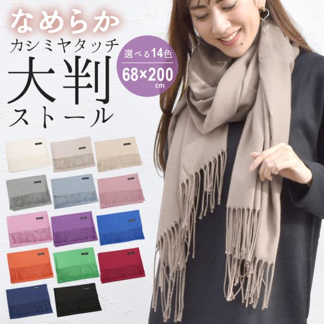 ストール 大判 秋冬 薄手 カシミヤ タッチ レディース 大判ストール マフラー ショール 柔らかい 防寒 冷房対策 ひざ掛け 無地 シンプル おしゃれ 洗える 200cm 68cm (p4s)(即納/12月下旬予約)