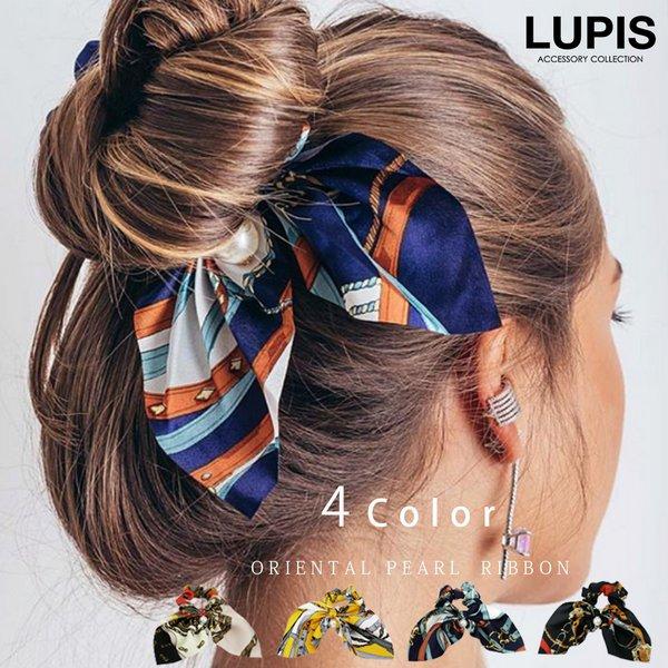 シュシュ スカーフシュシュ ヘアアクセサリー リボン パール ボリューム 大きめ ブラック ネイビー イエロー ベージュ LUPIS ルピス
