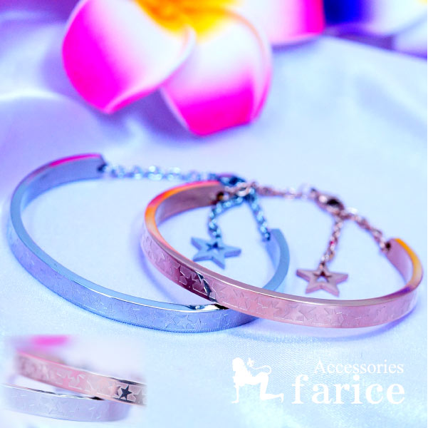 星 スター バングル チェーン ペア シンプル ステンレス メンズ レディース ブレスレット 【ピンクゴールド/シルバー】