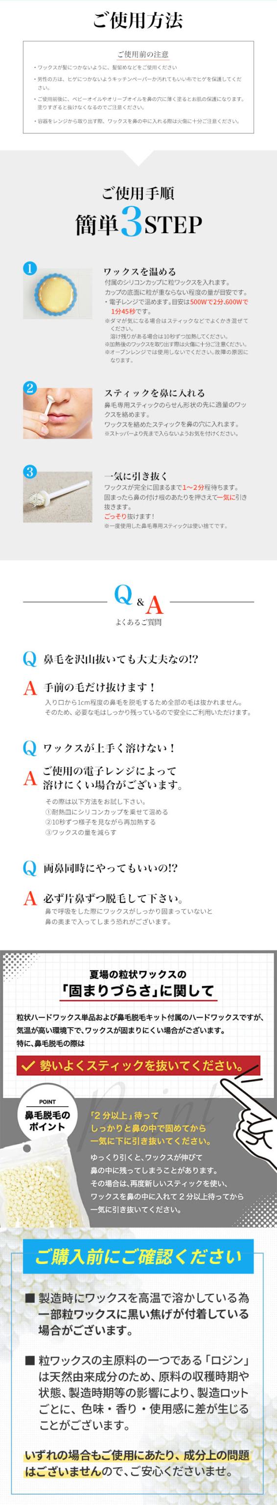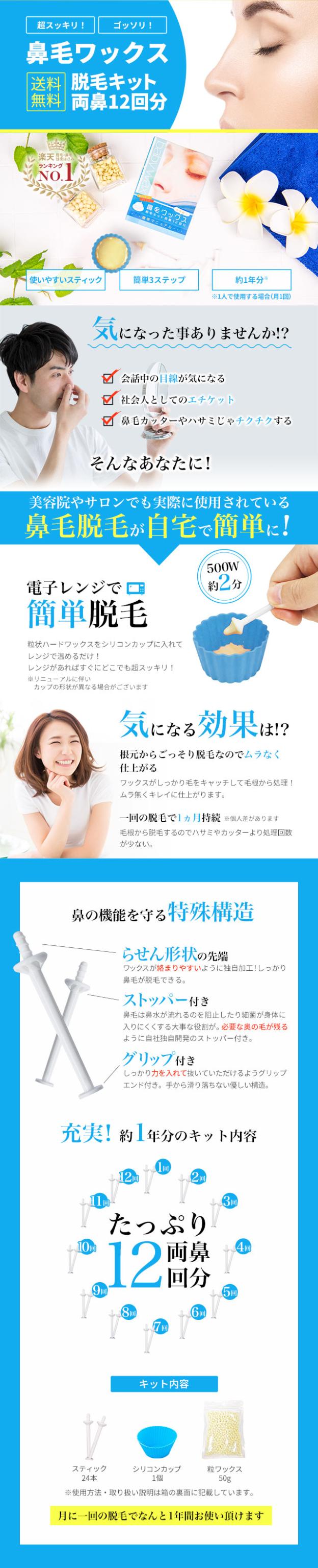 | 特徴 | 今話題の鼻毛ワックス脱毛両鼻約12回分がセットになったお買い得キット! |