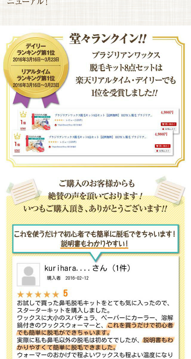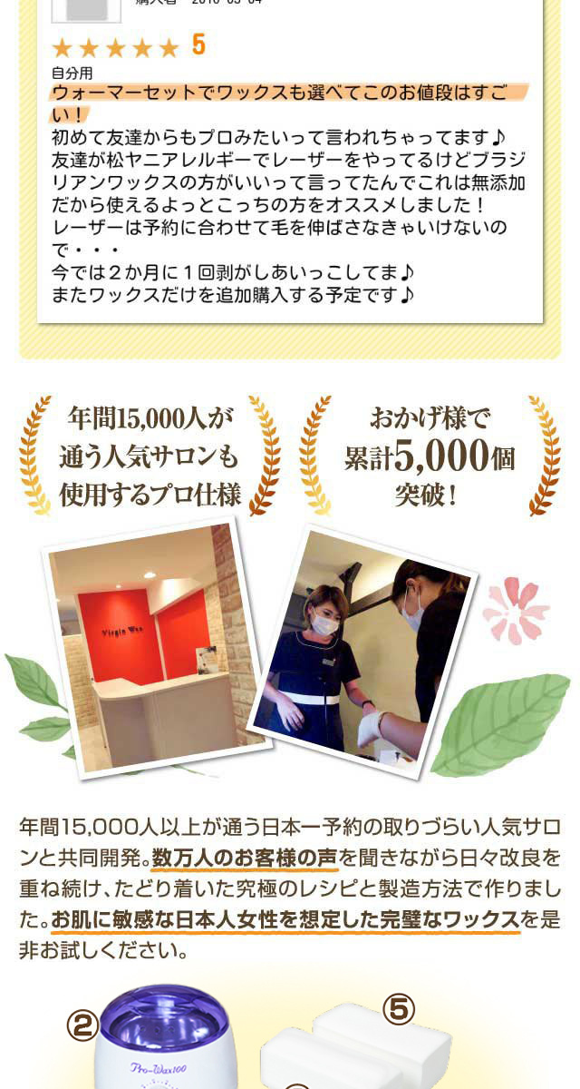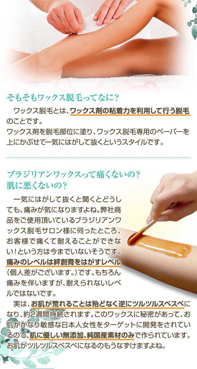 - 以前サロンでワックス脱毛して火傷なのか皮膚が剥がれたのかわからないけどトラブルにあったことがあって不安でしたが無事に出来ました!! コツがいりますが何回かやればすぐ慣れます。 ソフトワックスなのでやは...