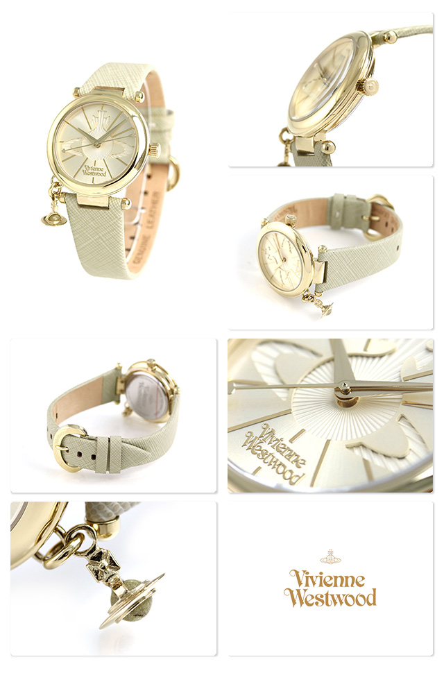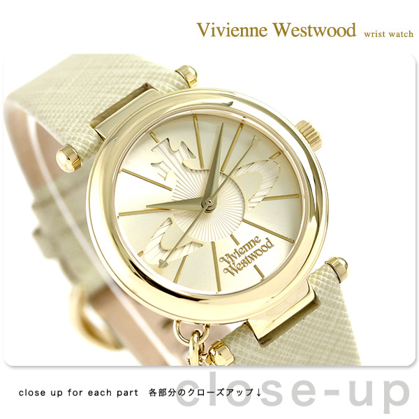 ヴィヴィアン ウエストウッド オーブ ポップ 32mm クオーツ レディース 腕時計 VV006GDCM Vivienne Westwood ORB POP 32mm アナログ ゴールド×ベージュ 革ベルト ◆Vivienne Westwood(ヴィヴィアン・ウエストウッド)はイギリスのファッションデザイナー及び、ファッションブランドです。ブランドのロゴマークには王冠と地球をモチーフにした“オーブ”を掲げています。反逆性とエレガンスさを兼ね備えたアヴァンギャルドなデザインで、若い年代から圧倒的支持を得ています。 文字盤の中央に存在感のあるオーブが輝くモデル。バンドには裏側がサラサラと触り心地のよいレザーを採用。ケースには可愛らしい小さなオーブチャームが付いています。ヴィヴィアンらしいデザインと、揺れるチャームが腕元をオシャレに演出してくれます。