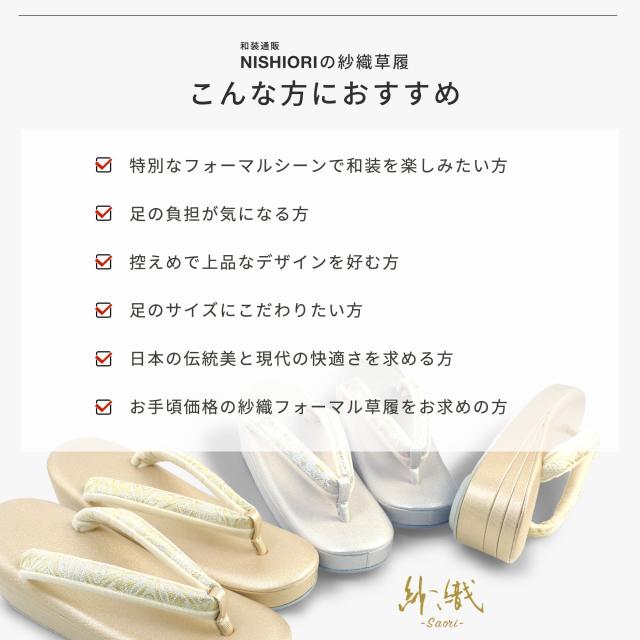 日本を代表する草履ブランド「紗織」ならではの高級な逸品です。
