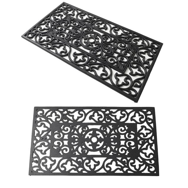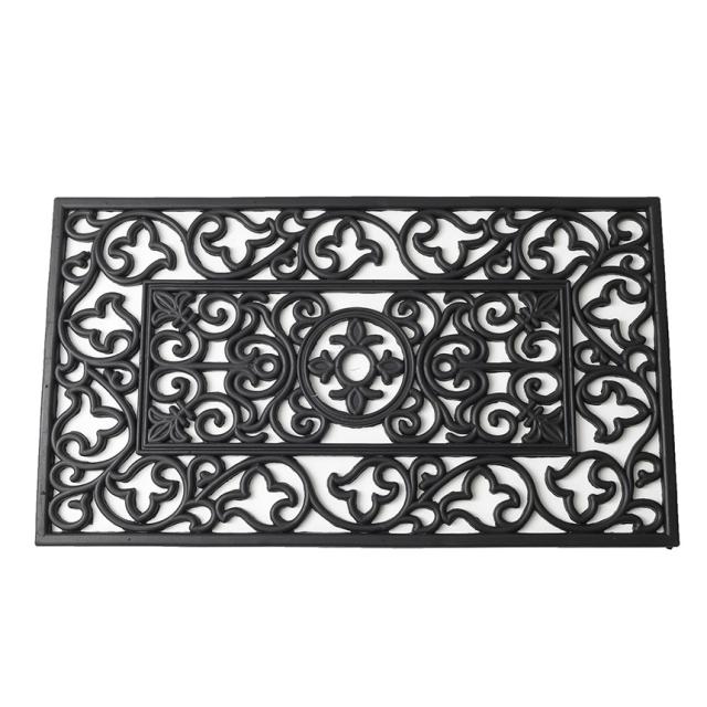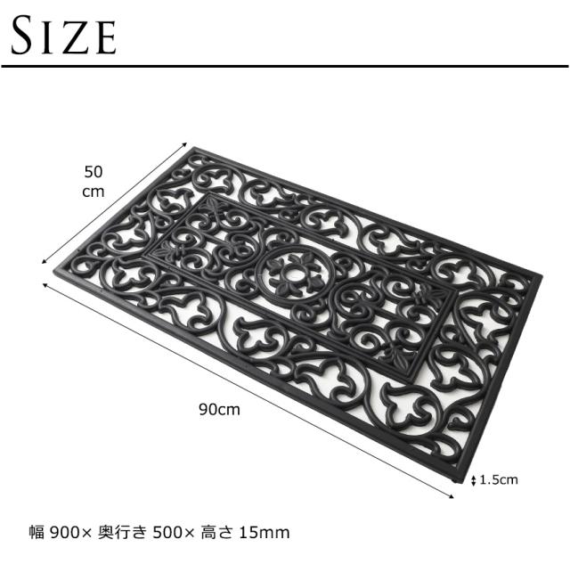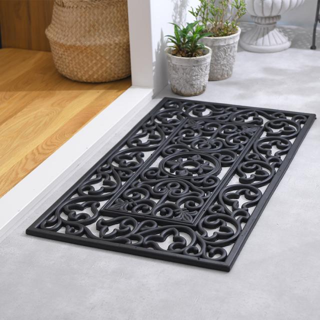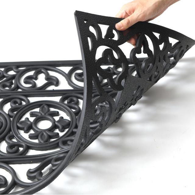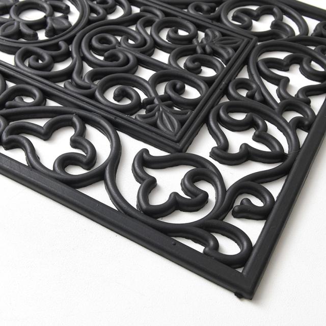 備考:イタリアVELCOC社の屋外用玄関マット。玄関、入り口に置くだけ。まるでアイアン(鉄製)のように高級感を演出してくれます。お手入れは簡単、汚れたらお手入れは簡単、さっと水洗いをしてください。全体がゴムでできているため滑りづらい仕様。アラベスク模様のデザインが強風も上手にしのいでくれるので、風で飛びづらい仕様です。※雨などで濡れたり、水洗い後は陰干しをしてください
