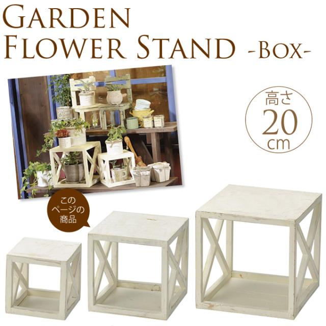 花台 木製 角型 フラワースタンド ボックス型 アンティーク ホワイト M フラワーラック 鉢置き 花台 プランター台 プランター置き おしゃれ オシャレ