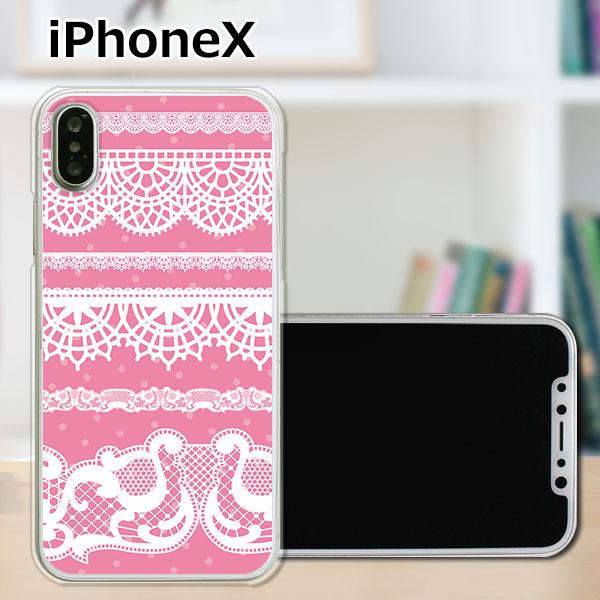 iPhoneX / iPhoneXS 共通 ハードケース/カバー 【Pinkレースボーダー PCクリアハードカバー】 スマホケース スマホカバー スマートフォンケース