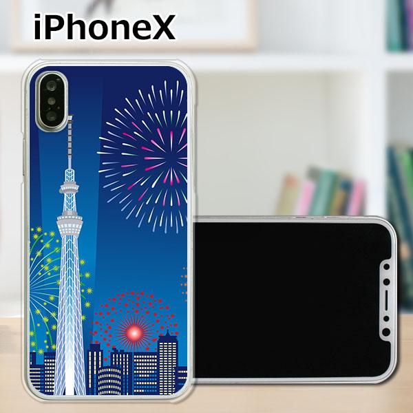 iPhoneX / iPhoneXS 共通 ハードケース/カバー 【スカイツリーと花火 PCクリアハードカバー】 スマホケース スマホカバー スマートフォンケース