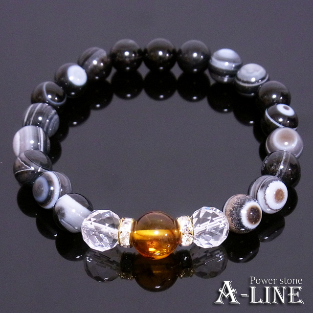 パワーストーン ブレスレット 秋冬の金運UPに 琥珀(アンバー)10mm&天眼石&64面カット水晶8mm PW-3215