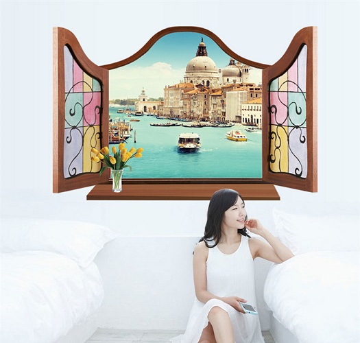 ウォールステッカー 飾り窓 ヴェニスの風景 壁シール 欧風 水の都 ベネチア ヨーロピアン 水上都市 イタリア 貼り直せる 壁ステッカー