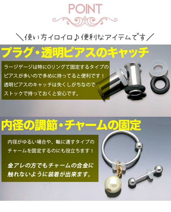 【まとめて10個セット】ピアス ボディピアス キャッチ のみ 交換パーツ 単品 Oリング キャッチ ゴム 留め具 14G 12G 10G 8G 6G 4G 2G 0G 00G