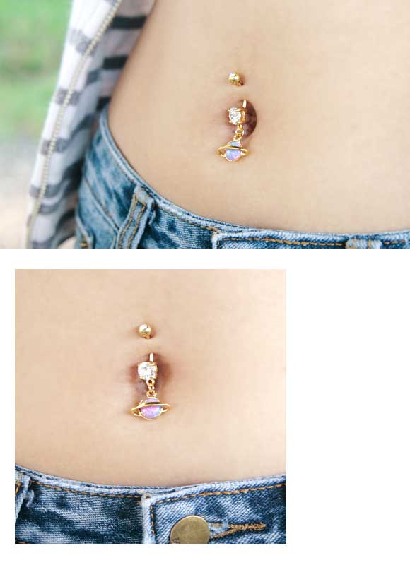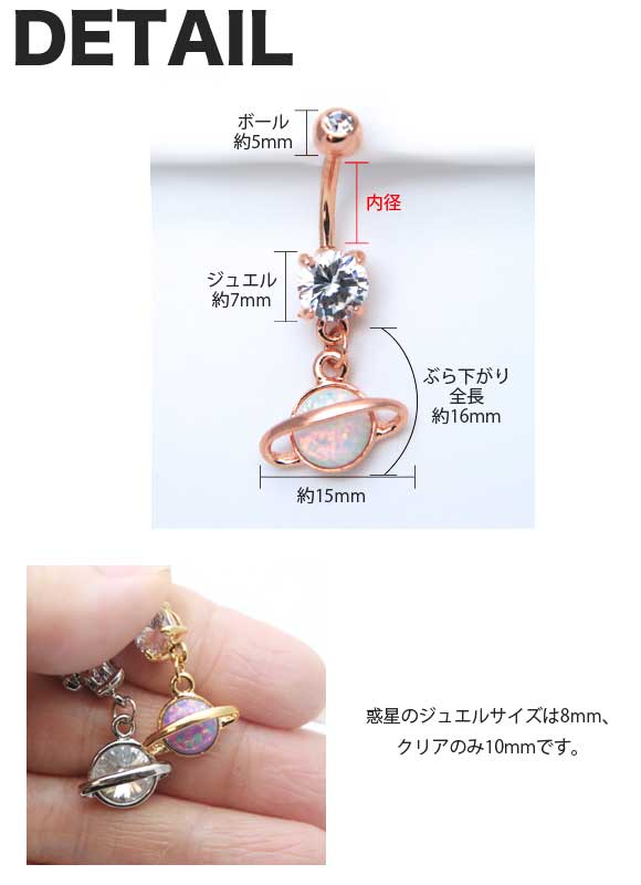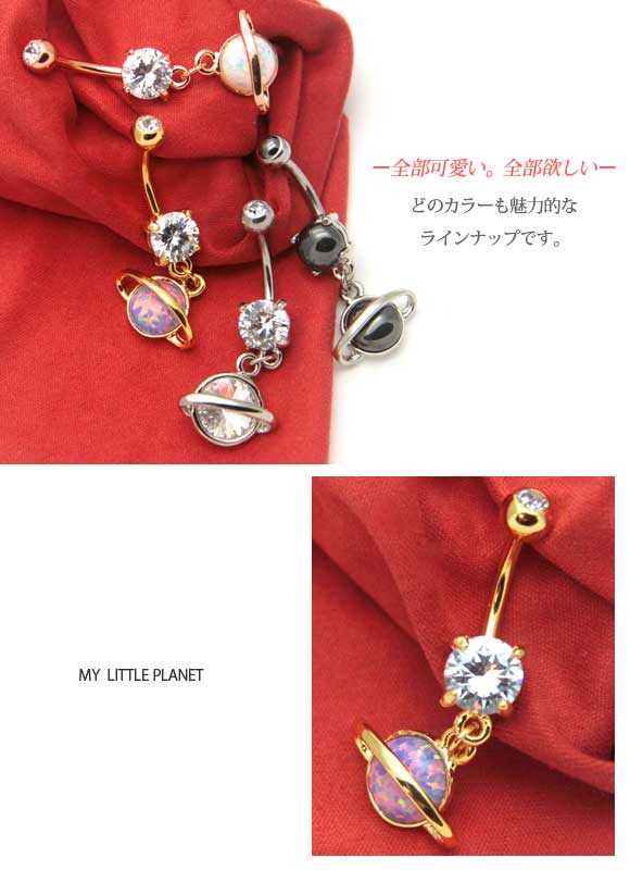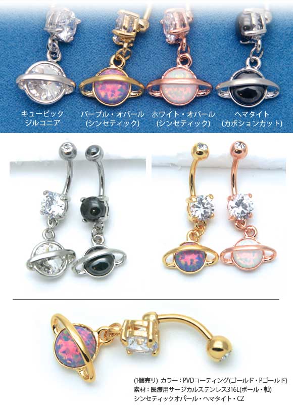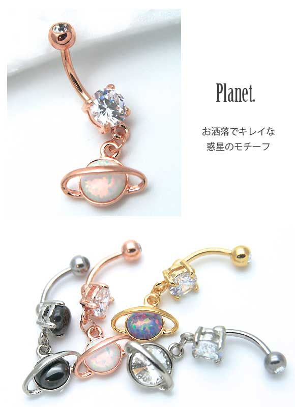 本日P2倍 14G ピアス ボディピアス へそピアス 惑星 オパール ゴールド プラネット 宇宙 金属アレルギー対応 316L 高品質