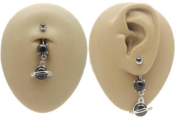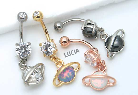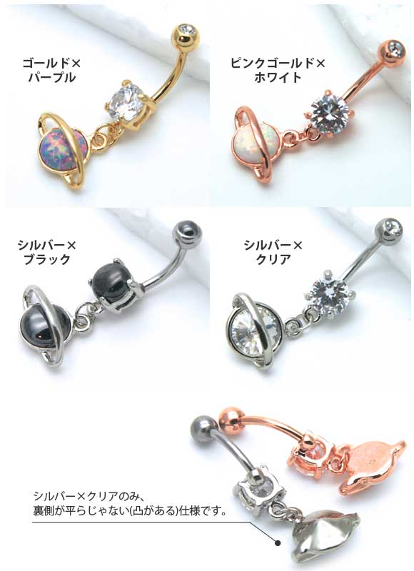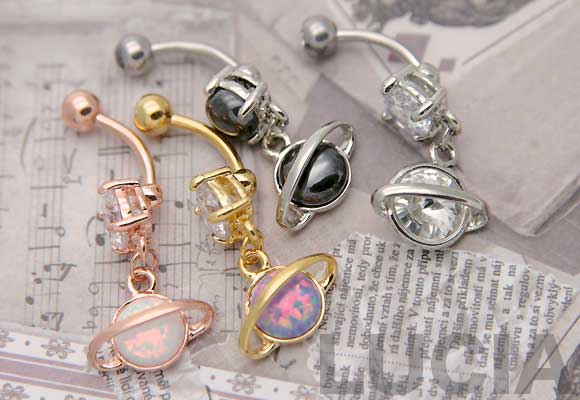 キレイなオパール・ヘマタイト・クリアジュエルを惑星デザインに落とし込んだお洒落なへそピアスです。