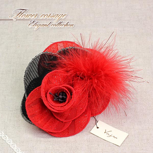 コサージュ ハンドメイド 日本製 レッド ブラック 目立つ パーティー 発表会