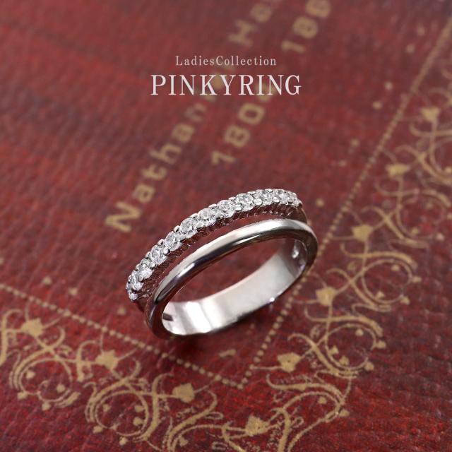 ジルコニアが贅沢に煌めくピンキーリングです。