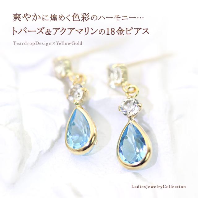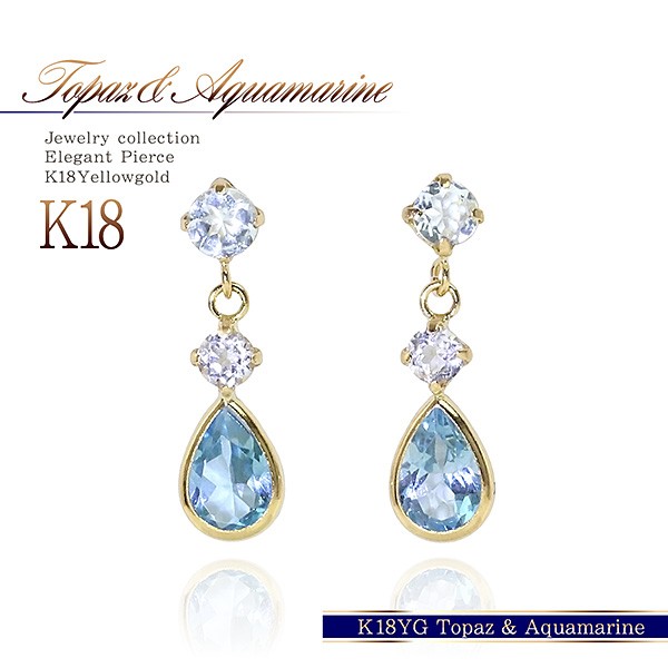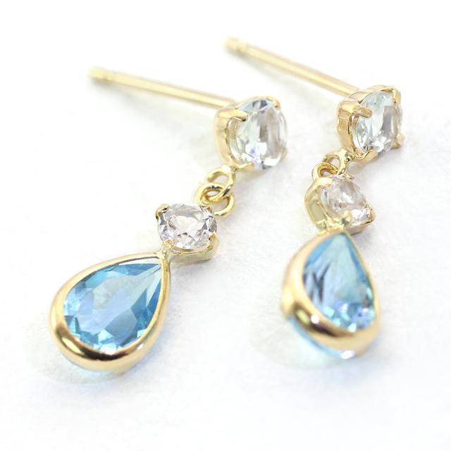 18金ピアス レディース 18k ピアス ブルートパーズ アクアマリン ホワイトトパーズ 18金 ゆれる ジュエリー プレゼント K18 ゴールド 11月 3月 誕生石 宝石 水色 青 小ぶり 小さめ かわいい 誕生日 女性 彼女 妻 嫁 本物 ホワイトデー お返し 雫形 雫型 おしゃれ