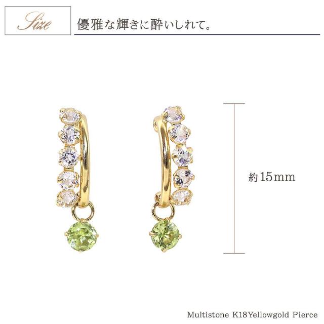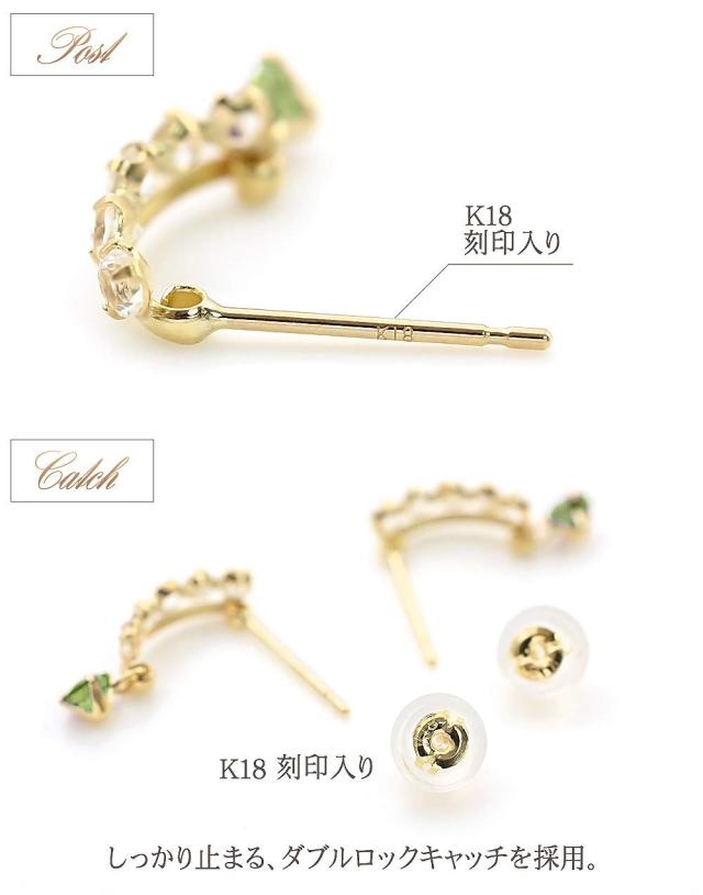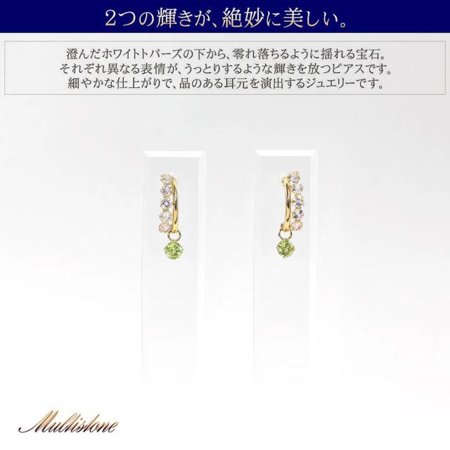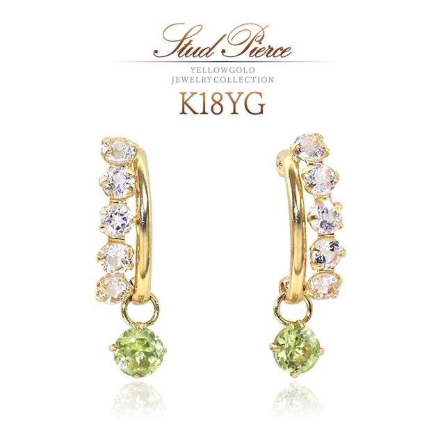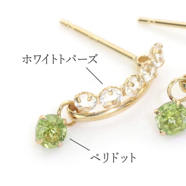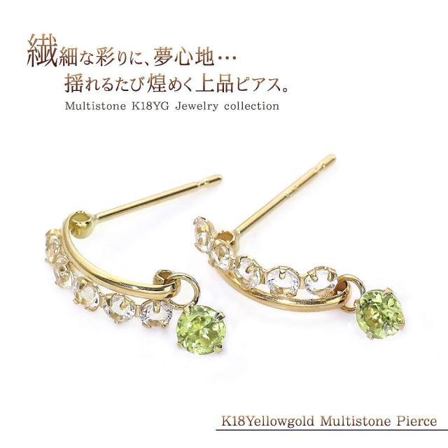 ピアス レディース 18金 18k ゴールド ペリドット ホワイトトパーズ 揺れる プレゼント K18 誕生石 かわいい おしゃれ お呼ばれ 記念日 誕生日 お祝い 贈り物 女性 彼女 妻 嫁 奥さん 娘 K18YG 8月 11月 誕生石 宝石 天然石 緑 グリーン 母の日 ギフト 2026