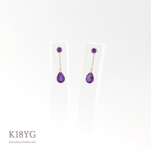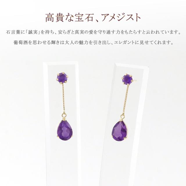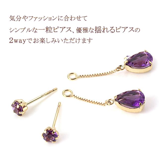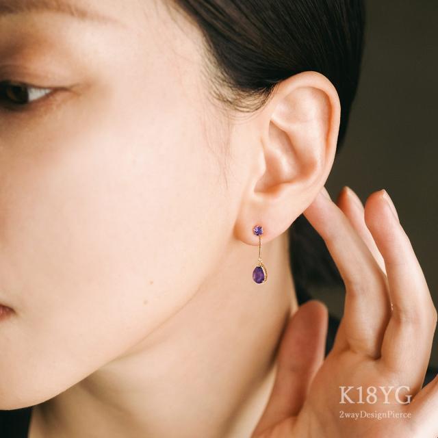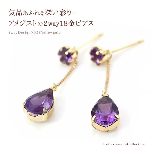 ピアス アメジスト 18金 2way k18 アメシスト プレゼント 18k ゆれる プレゼント 2月 誕生石 かわいい レディース ジュエリー 紫 雫型 宝石 2WAY おしゃれ 揺れる パワーストーン 女性 彼女 奥さん 妻 嫁 娘 ギフト 贈り物 30代 40代 50代 古希祝い