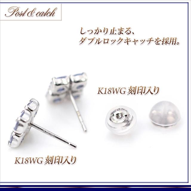 | 地金・素材 | ・タンザナイト(タンザニア産) 合計 1.00ct ラウンドカット (品質保証書付き) ・地金:K18WG(18金ホワイトゴールド) ・ダブルロック キャッチ |