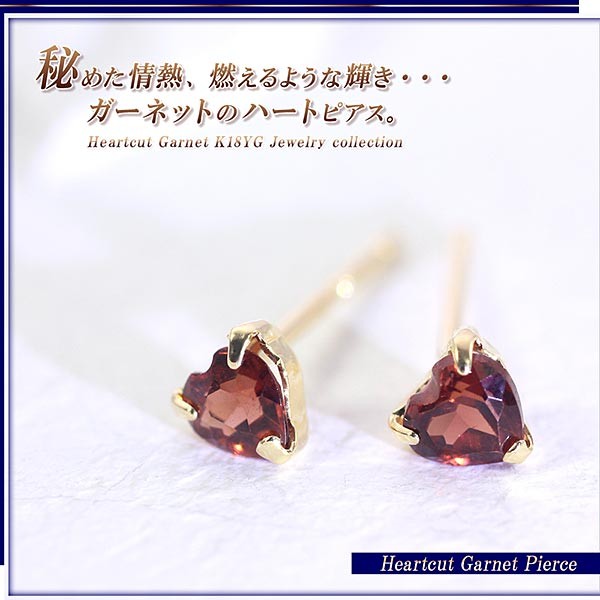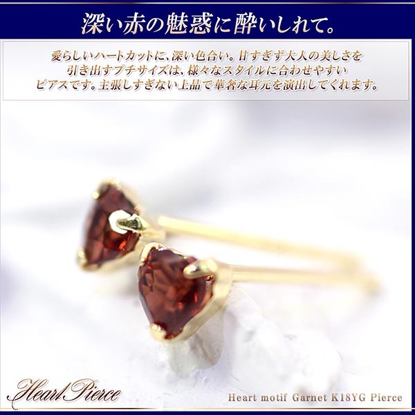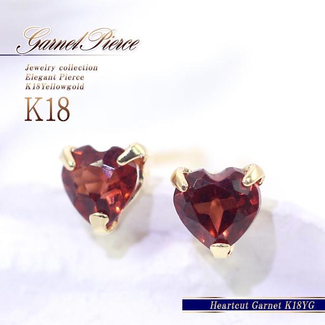 ハート ピアス 18金 レディース ガーネット k18 ゴールド 小ぶり ハートカット プレゼント 18k かわいい アクセサリー 1月 誕生石 小さい ホワイトデー お返し 記念日 ギフト 贈り物 誕生日 ガーネットピアス 赤 レッド 女性 彼女