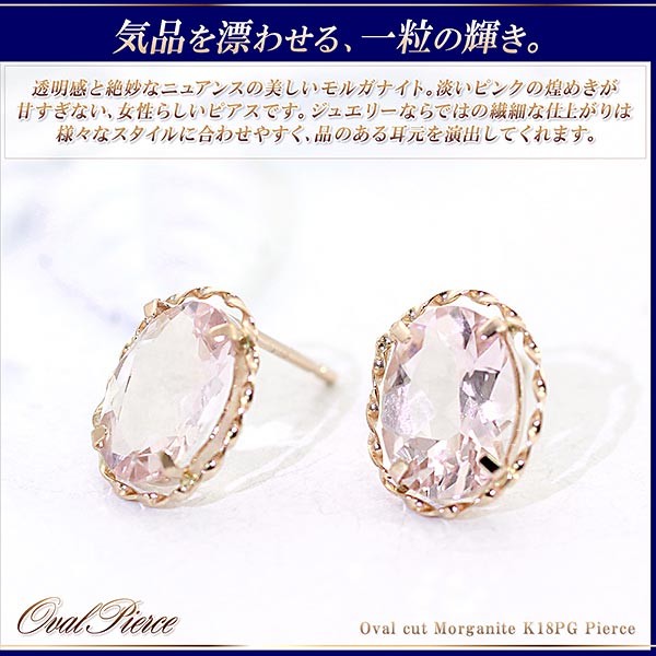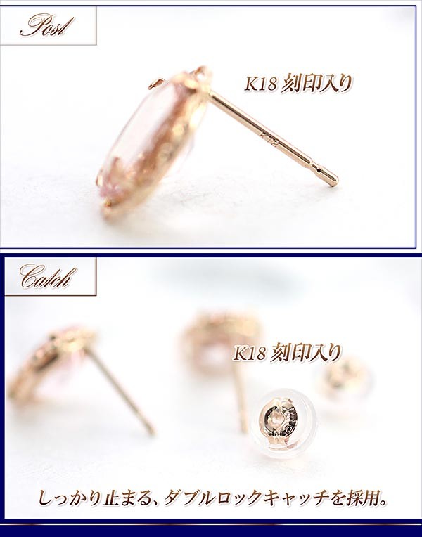 | 地金・素材 | ・モルガナイト(マダガスカル産) トータル2.0ct オーバルカット (品質保証書付き) ・地金:K18PG(18金ピンクゴールド) ・ダブルロック キャッチ ※刻印等は異なる場合がございます。 |